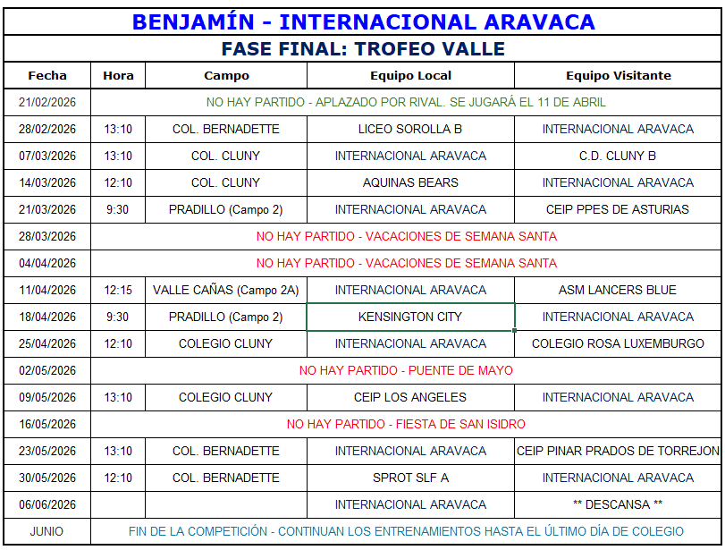 E.F. INTERNACIONAL ARAVACA